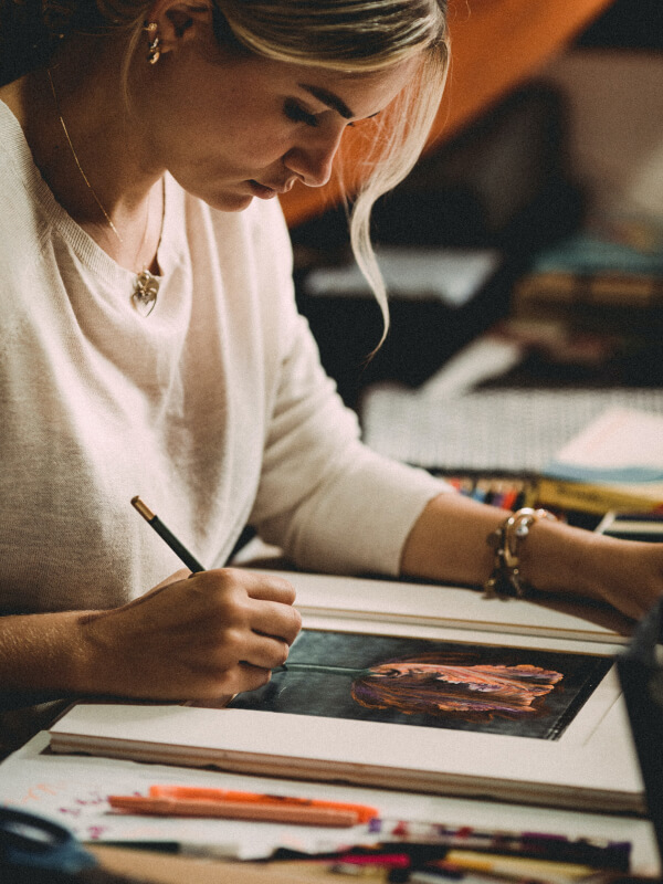 At a young age I developed a love for painting and drawing, and have been honing her craft ever since. Lorem ipsum dolor sit amet, consectetur adipiscing elit. Donec molestie viverra nulla et mattis. Integer non enim non ligula feugiat porttitor. Nam vitae volutpat velit, ut ornare mi. Sed sit amet magna dui. Mauris posuere justo lorem, sed eleifend ante sagittis sit amet.